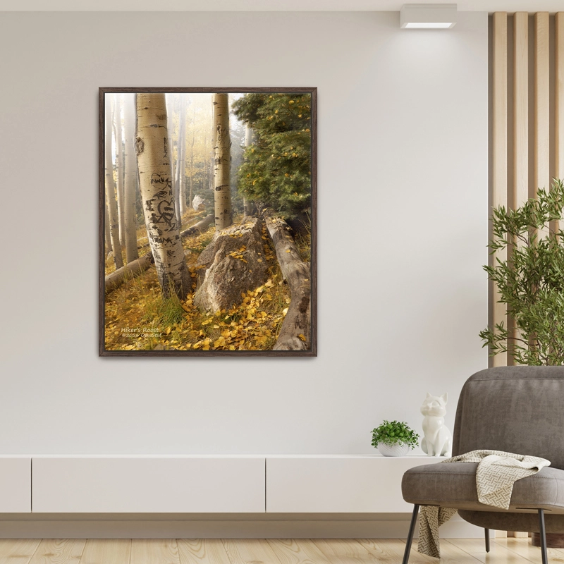 Thick, archival-grade polyester canvas is carefully hand-stretched over solid wood stretcher bars, then attached to a wood floater frame. Foamboard backing on larger sizes stiffens the canvas. Precise corner fits and alignment deliver a gallery grade finished piece ready to hang.